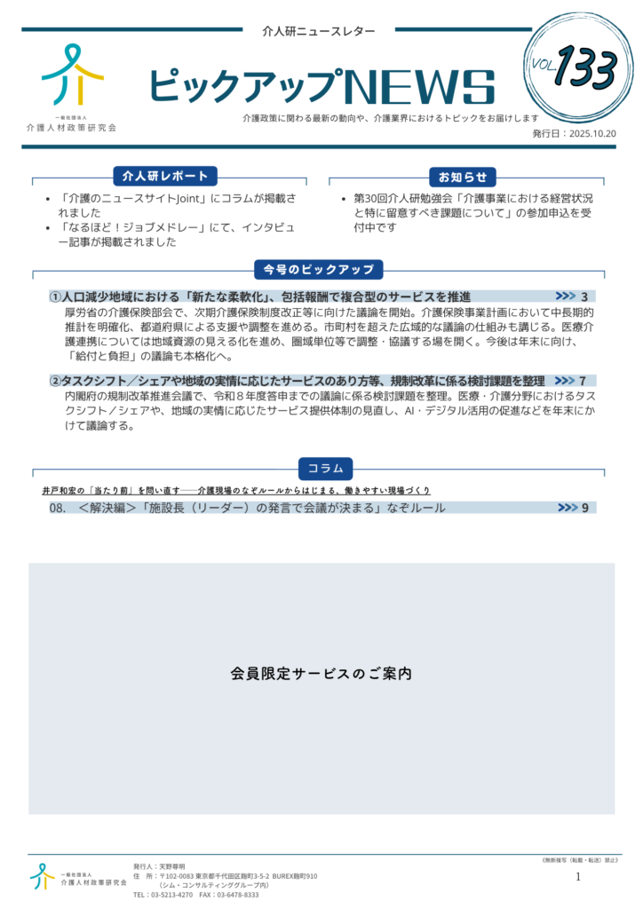本会会員宛に「ピックアップNEWS Vol.133」を配信しました。