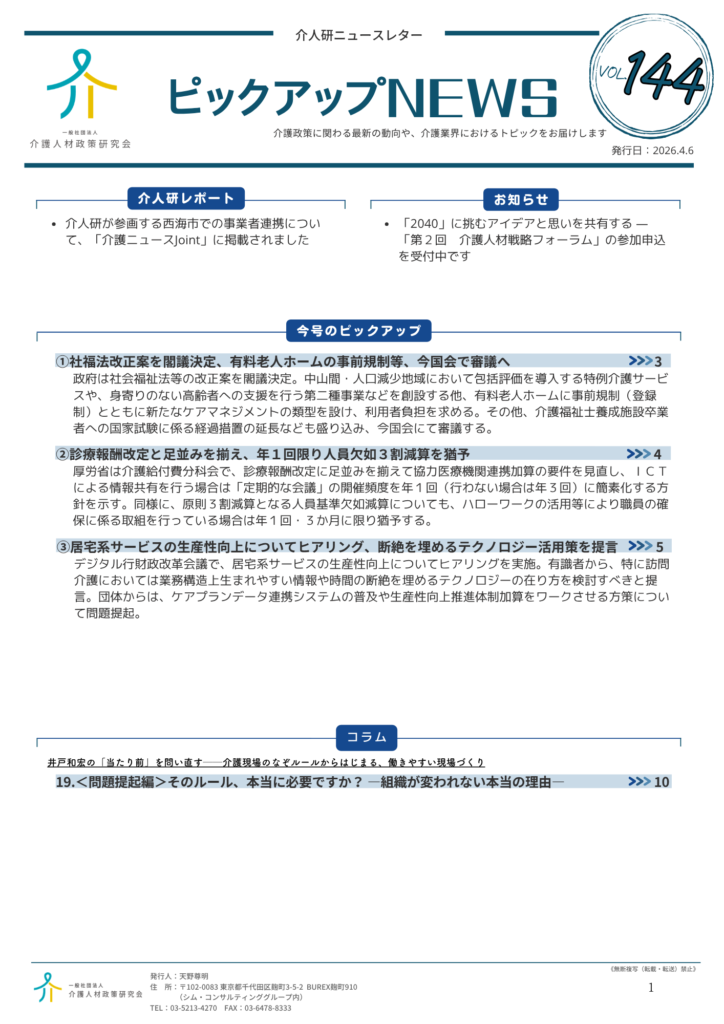 本会会員宛に「ピックアップNEWS Vol.144」を配信しました。