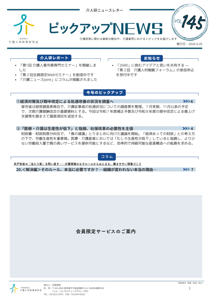 本会会員宛に「ピックアップNEWS Vol.145」を配信しました。