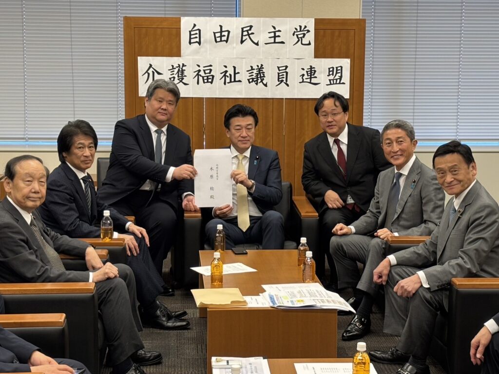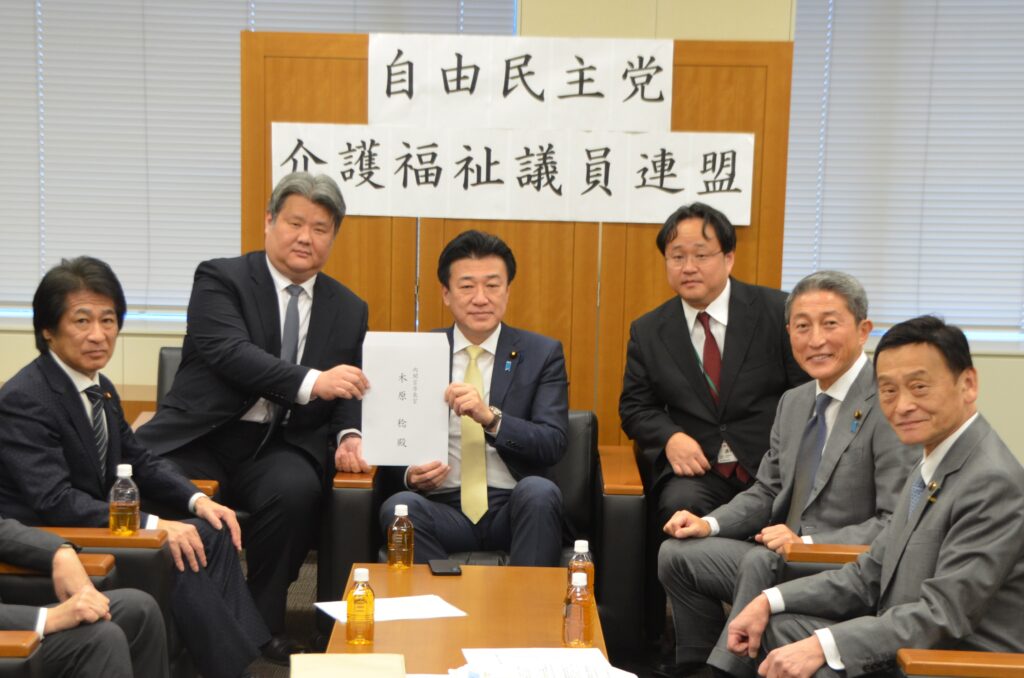 臨時で行われる令和8年度介護報酬改定に向けて、12月16~17日、自由民主党・介護福祉議員連盟(麻生太郎会長)による申入れが行われました。